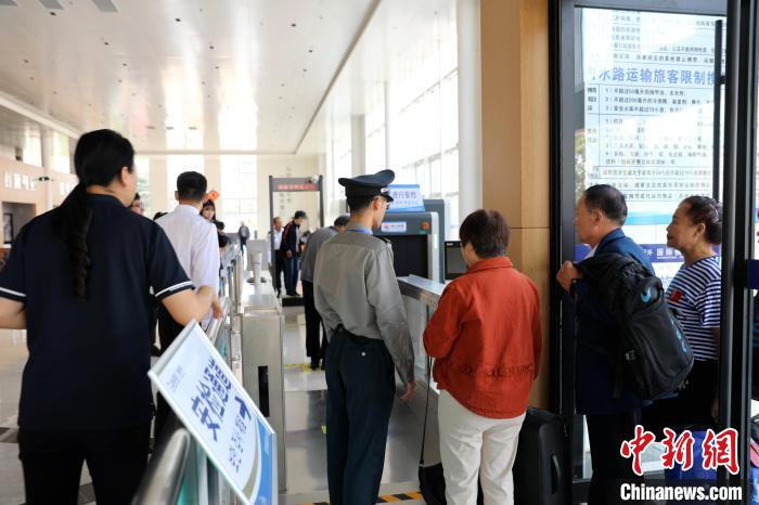 图为“日照东方”轮旅客排队安检进候船厅。娄华轩 摄