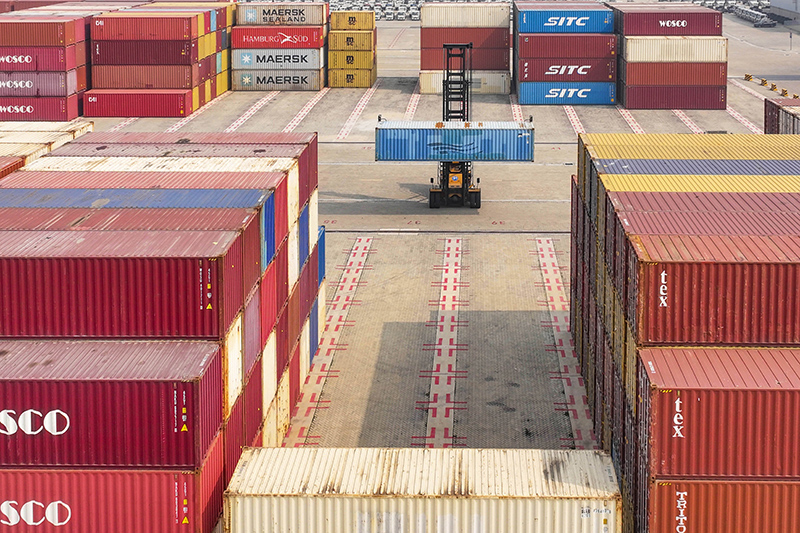 派河港内整齐的货物集装箱。人民网记者 李希蒙摄