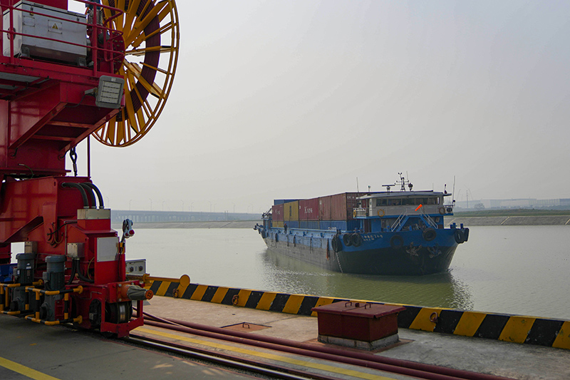 站在港口作业区,一艘艘集装箱货船正在港区内有序排列等待货物装卸,港口所处的合肥市经开区,是合肥市集装箱生产腹地,周边聚集了新能源汽车、白色家电、光伏以及装备制造等产业集群。
