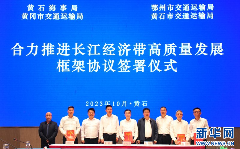 为建立长江水域鄂东段综合交通高质量发展协作管理机制,10月26日下午,黄石海事局、鄂州、黄冈、黄石三市交通运输主管部门共同签订推进长江经济带高质量发展“三地四方”框架协议。