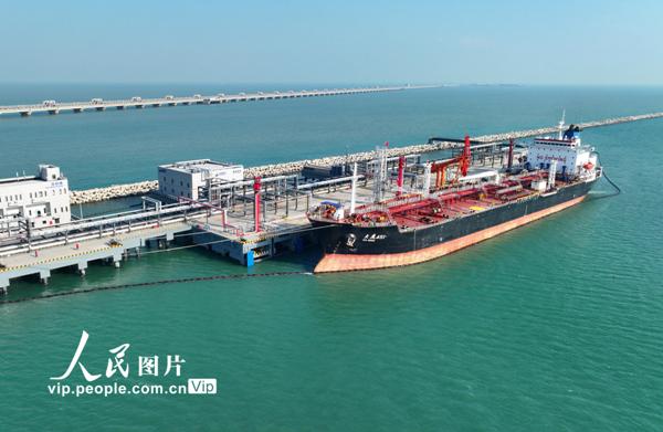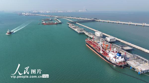 11月14日上午,在东营港宝港国际2×10万吨级原油码头6#泊位,首艘装载5万吨原油的“大庆451”轮正在进行靠泊作业,标志着该码头正式投用。