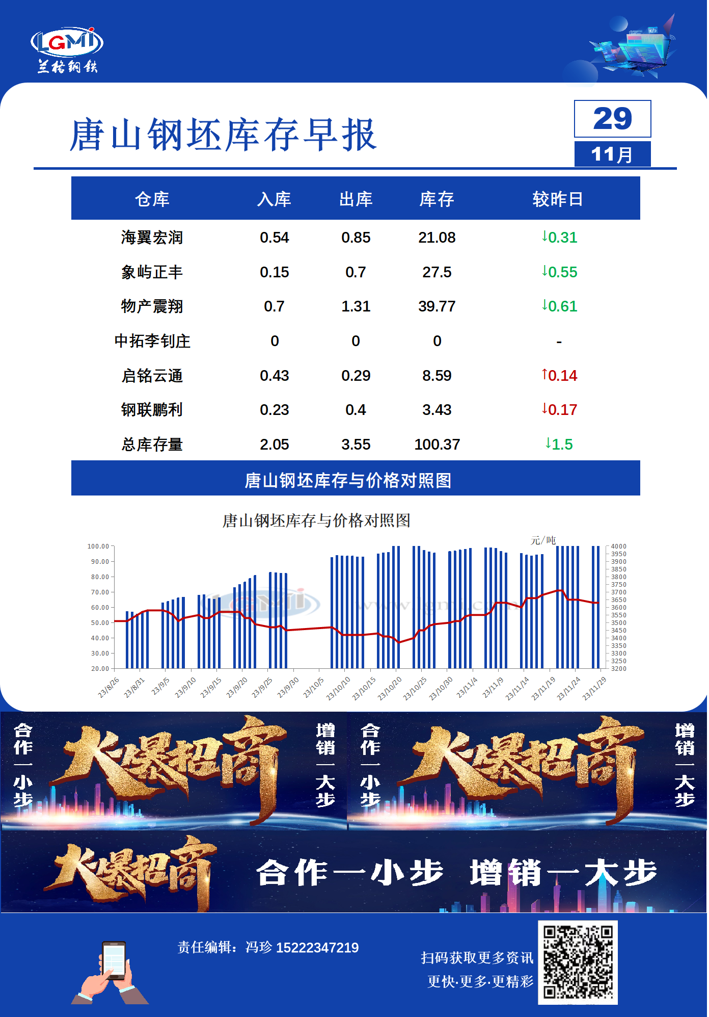 - 11月29日唐山钢坯库存早报2023/11/29