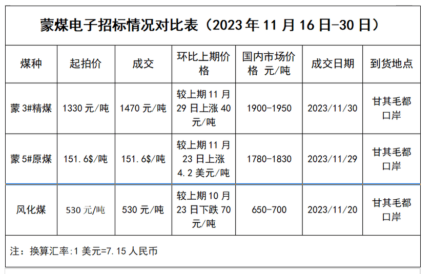 二、甘其毛都口岸蒙煤电子竞拍情况