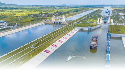 船只通过江淮运河庐江船闸。 左学长摄(影像中国)