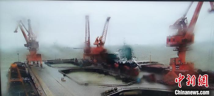 监控显示,由于大雾弥漫,江面能见度极低。(吴淞边检站供图)