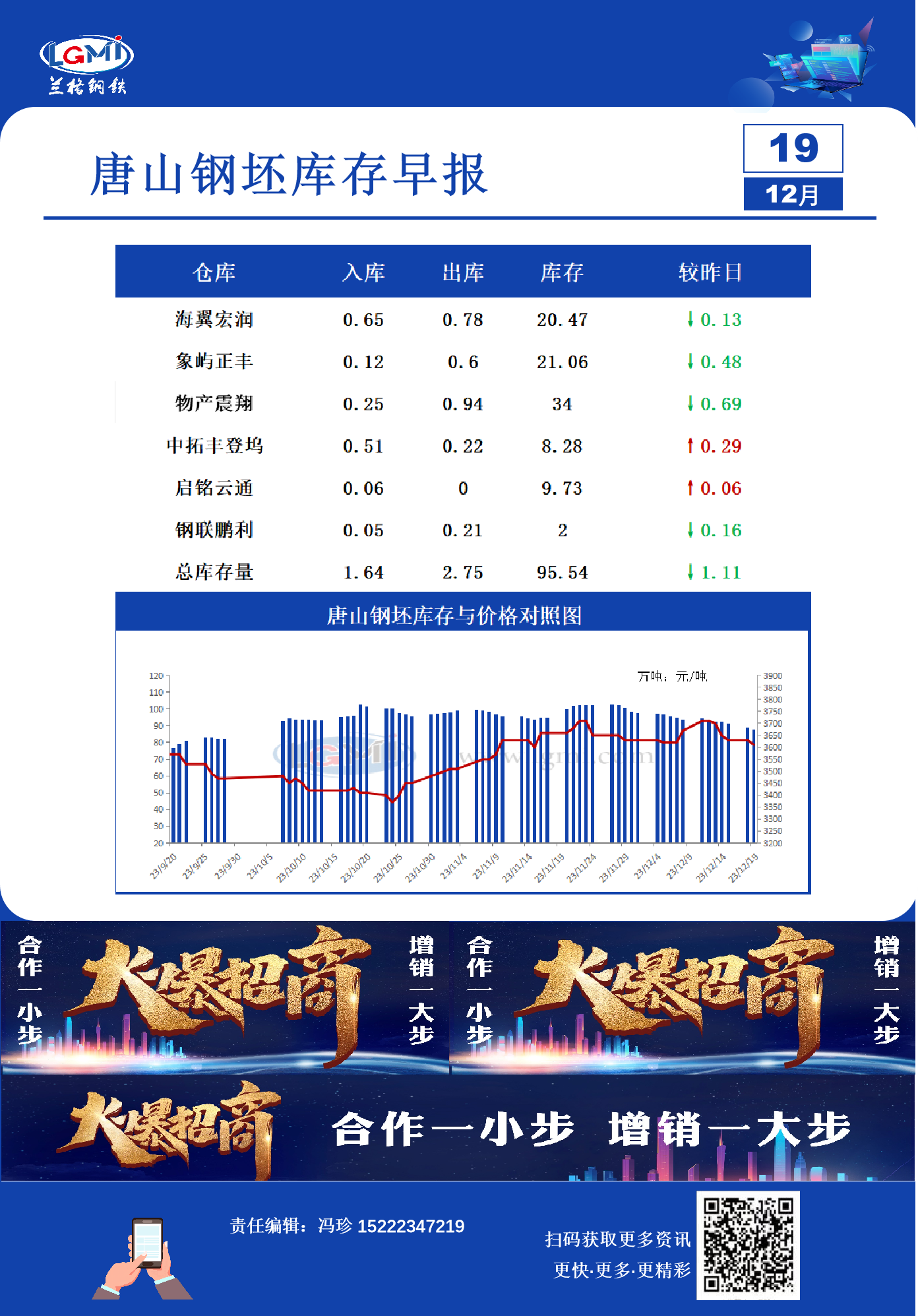 12月19日唐山钢坯库存早报