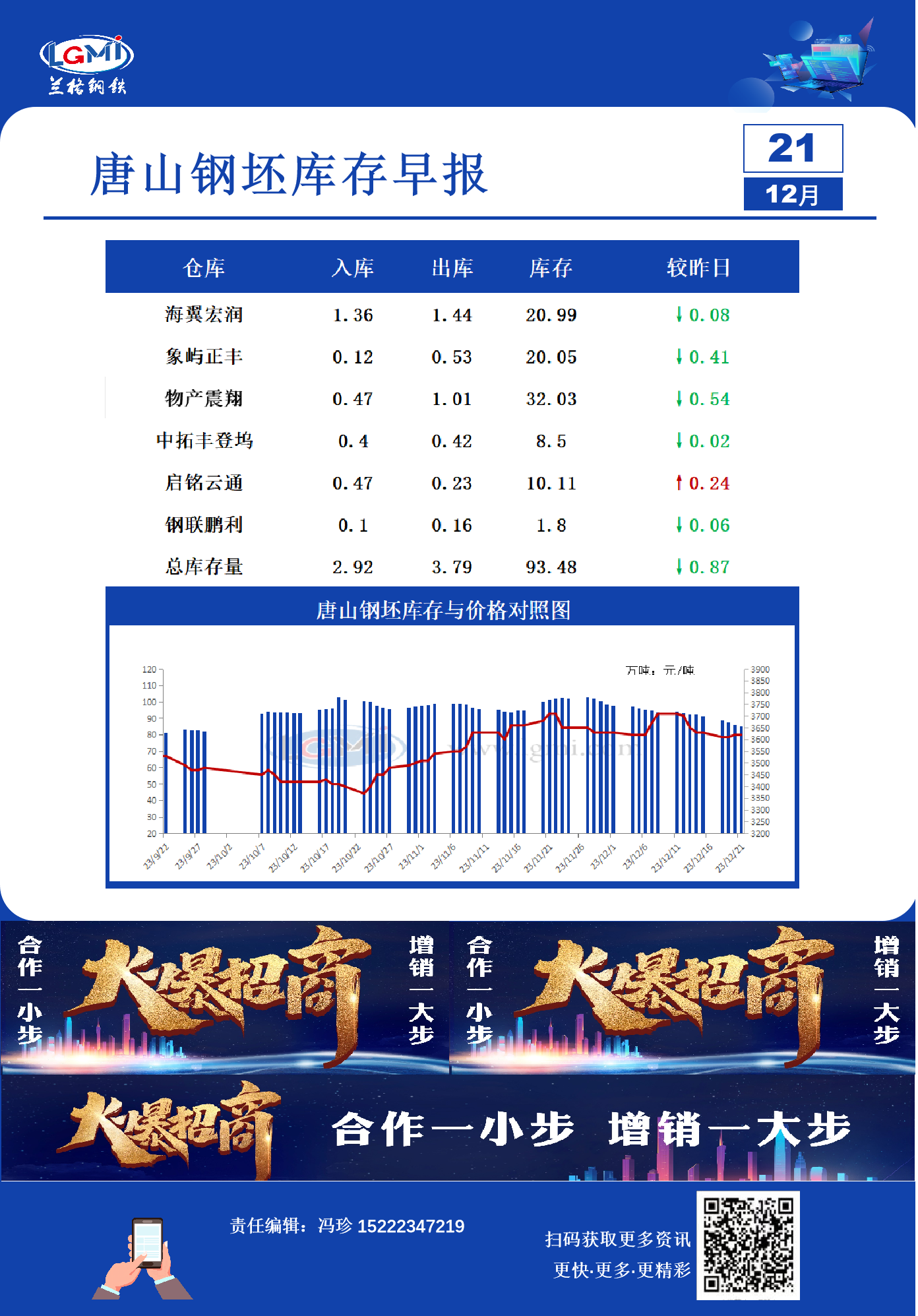 12月21日唐山钢坯库存早报