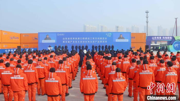 山东省世界级港口建设三年行动推进会暨全国产全自主自动化码头投产运营活动现场。张孝鹏 摄