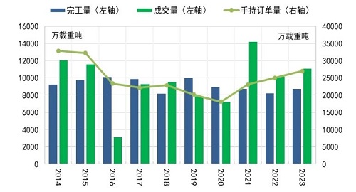 图1 近十年全球造船市场三大指标情况 数据来源:克拉克森,中国船舶集团经济研究中心