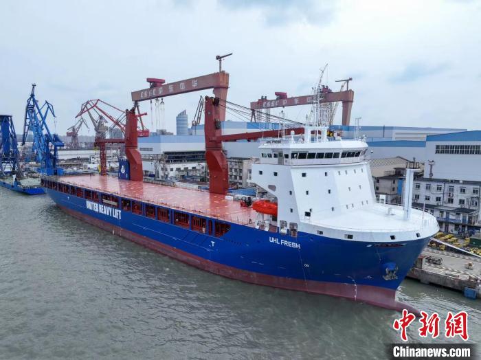 中新网上海1月23日电 (殷立勤何宝新)1月23日,中国船舶集团有限公司旗下沪东中华造船(集团)有限公司为德国重吊船航运公司(United Heavy Lift,UHL)建造的13500吨多用途重吊船“UHL FRESH”号签字交付。这是该公司新年交付的首船,为实现全年完工20艘,营收230亿元任务目标开好局起好步。