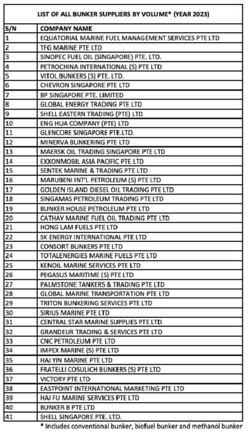 值得一提的是,2023年,新加坡持牌船用燃料油供应商再减少一家,丰田通商石油私人有限公司 (Toyota Tsusho Petroleum,以下简称“丰田通商石油”)的燃料供应商许可证被吊销。