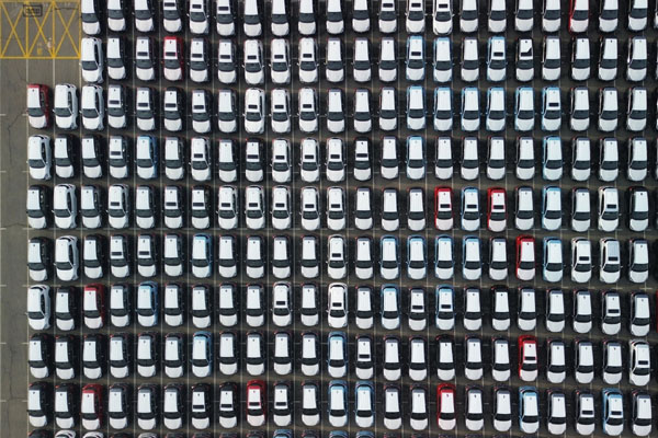 图为停放在大连港大连汽车码头有限公司港口停车场的新车。记者从大连海关获悉,2023年大连口岸全年出口汽车102773辆,同比增长143%,创历史新高。新华社记者陈为摄