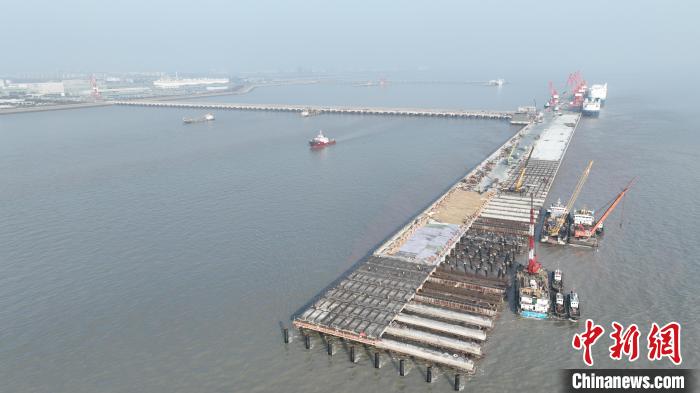 中新网上海2月5日电 (浦帆 徐海军 申屠高昊) 上海南港码头二期工程水域部分最后一段面层混凝土于近日浇筑完成,标志着该项目的主体结构已全部完工,预计将于2024年下半年正式投入使用。