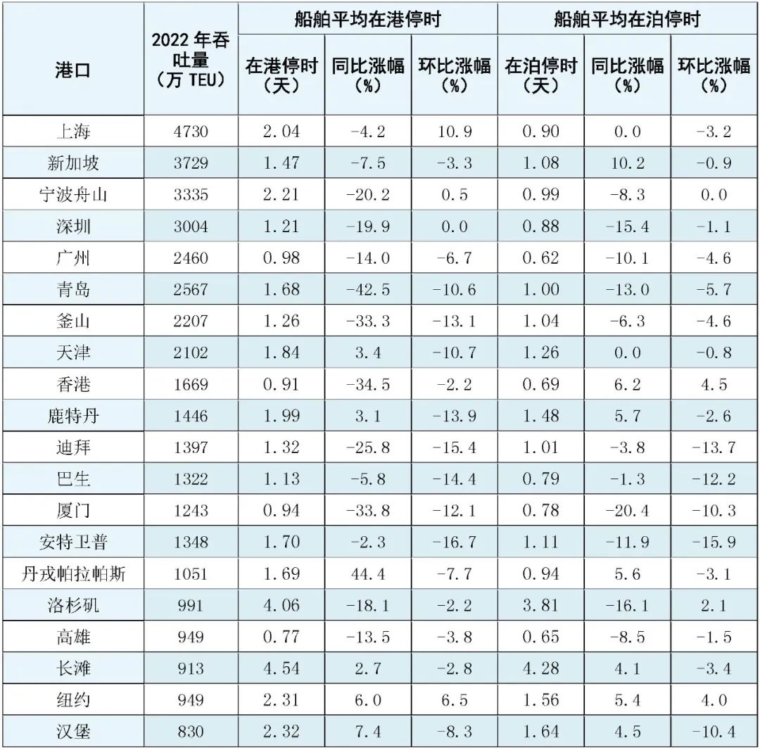 1月中国主要港口综合服务水平表现稳定,欧美主要港口作业效率起伏明显。