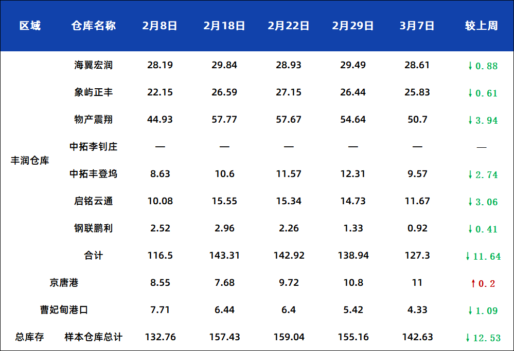 - 3月7日唐山钢坯库存周统计2024/3/7