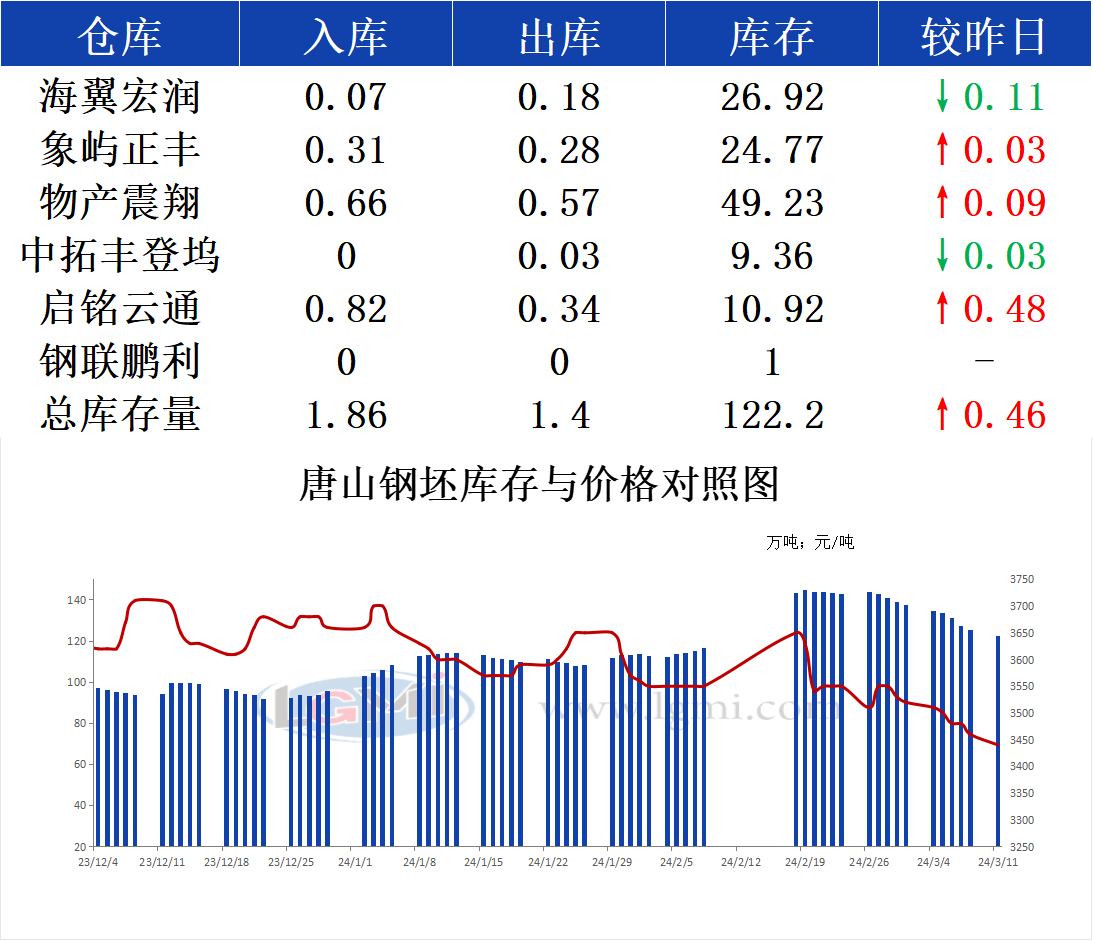 3月11日唐山钢坯库存早报