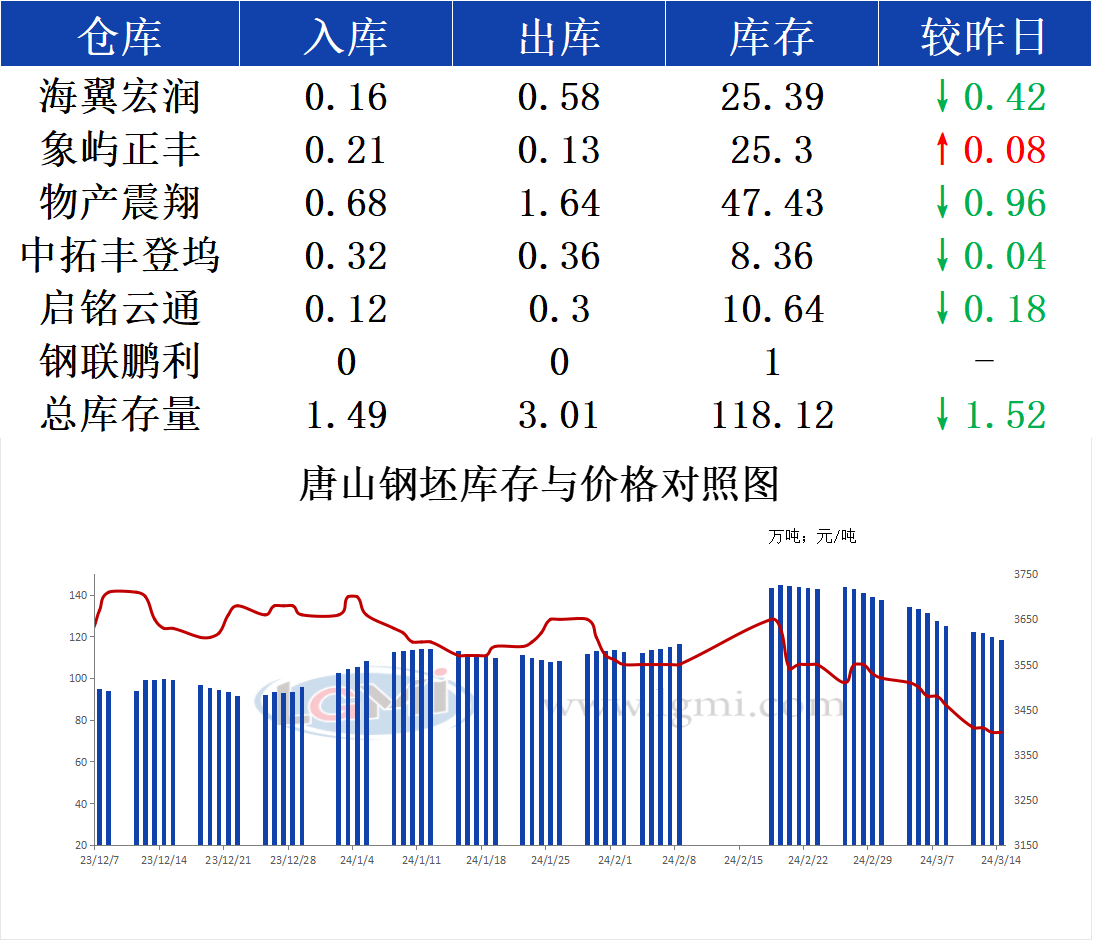 3月14日唐山钢坯库存早报