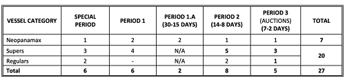 巴拿马运河管理在最新声明中表示,根据目前和预计的加通湖水位,在预订期2(过境日期前14天),将为超级船舶增加一个通行名额,在预订期3(过境日期前7天)开始时,将通过拍卖增加两个通行名额。在每天拍卖的四个时段中,三个时段将提供给超级船舶,一个时段将提供给普通船舶。若普通船舶拍卖结束时没有感兴趣的船舶,则该时段可拍卖给超级船舶。