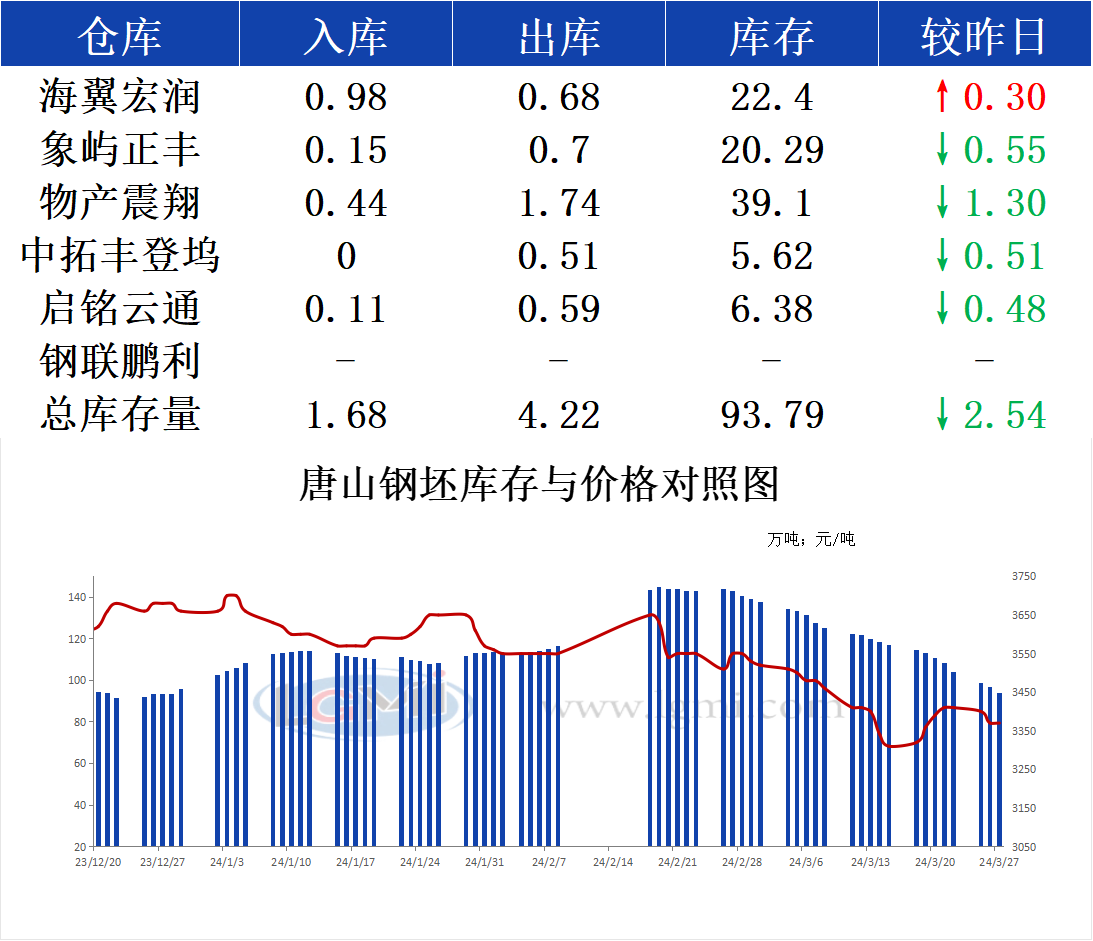 3月27日唐山钢坯库存早报
