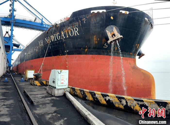 中新网莆田4月2日电 (吴志 林孟)4月2日,在福建省莆田市东吴港区八方码头东1号泊位,卸载了16万吨煤炭的利比里亚籍“协海领航者”轮顺利离境。
