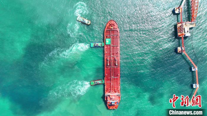 3月31日,30万吨级“光汇”轮顺利靠泊位于广东揭阳的广东石化公司原油码头。(高云龙 摄)