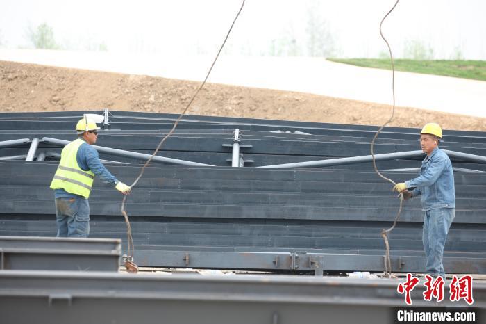 图为工人们在周口港中心港区中心作业区工程(一期)建设工地施工。刘俊涛 摄