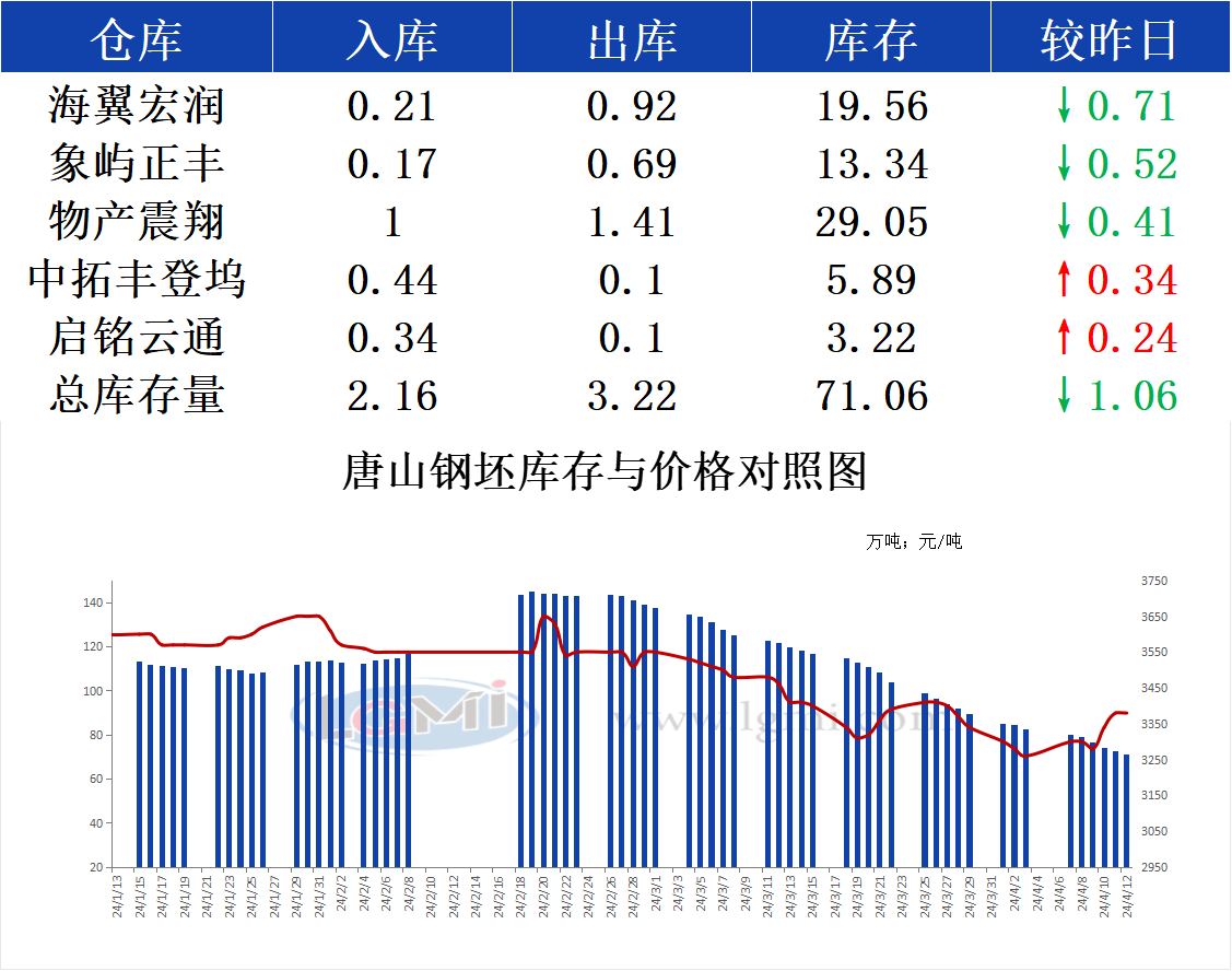4月12日唐山钢坯库存早报
