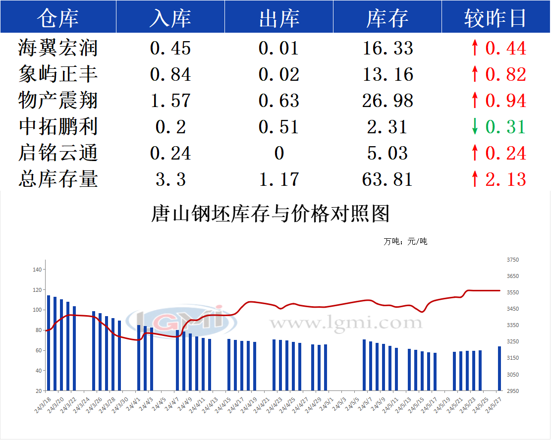 5月27日唐山钢坯库存早报
