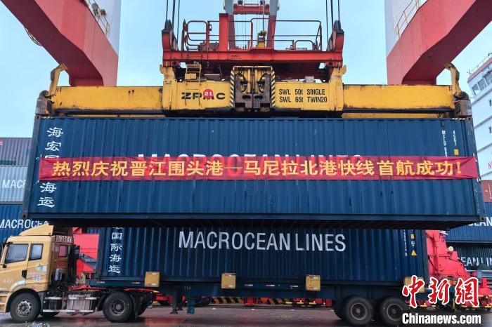 中新网福建晋江6月1日电 (孙虹 张静 林金海)为进一步优化东南亚航线网络布局,有效提升中国制造“出海”速度,1日,侨乡福建晋江围头港至菲律宾马尼拉港“点对点”货运直航快线首航。