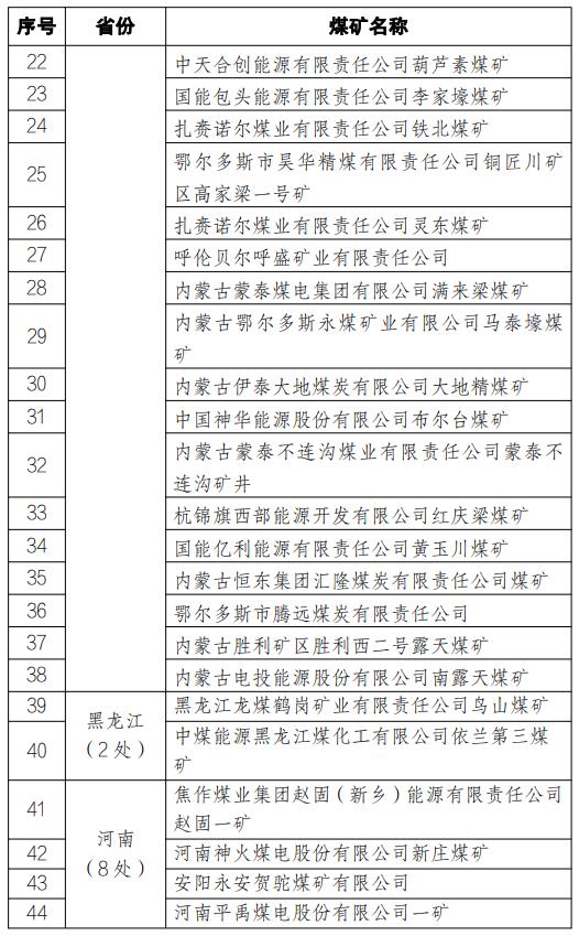 公示拟命名的安全生产标准化管理体系一级达标煤矿名单