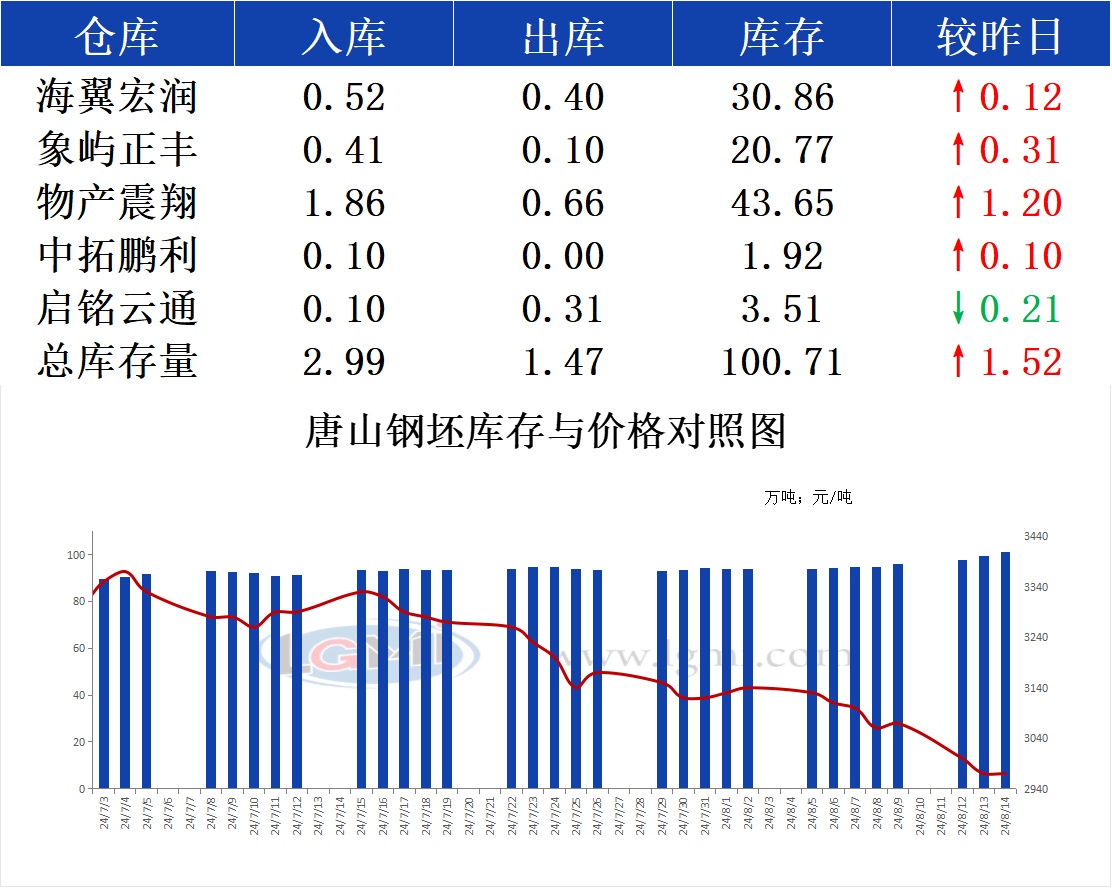 8月14日唐山钢坯库存早报