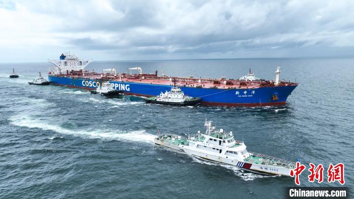 中新网钦州8月14日电(蒋瑞卿)8月13日,载运26.3万吨中东原油的“新申洋”轮重载进靠广西钦州港30万吨级原油码头,这是该码头投入使用以来首次接卸吃水达到20米的超大型油轮(VLCC)。广西海事局现场护航“新申洋”安全靠泊,切实保障重点能源物资水上运输安全畅通。