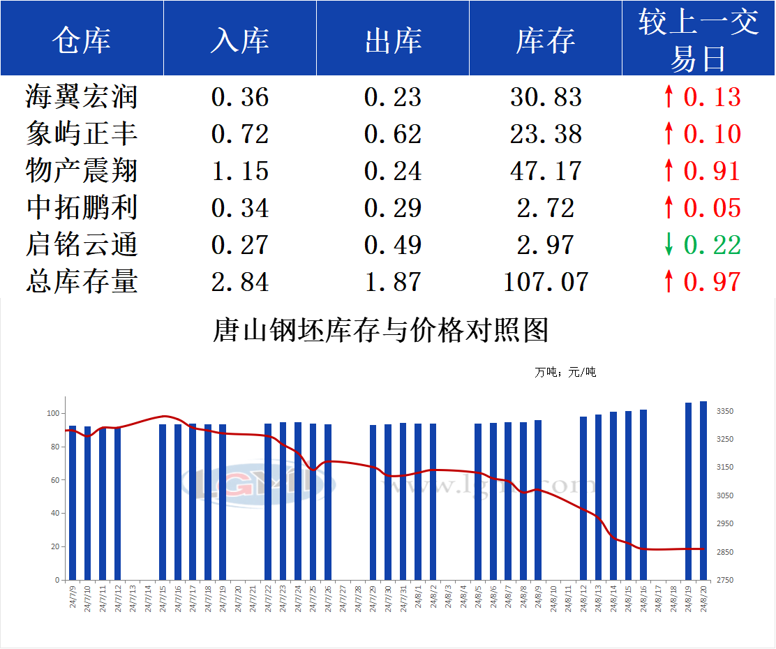 8月20日唐山钢坯库存早报