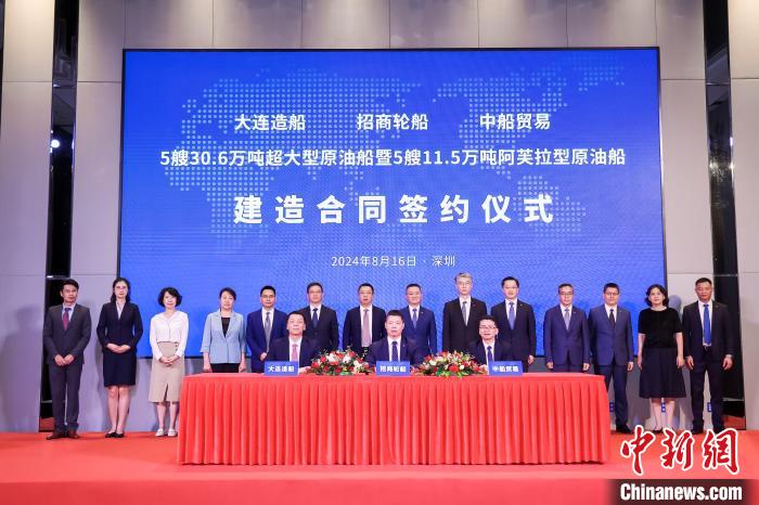 中新网大连8月19日电 (记者 杨毅)中国船舶大连造船19日发布消息称,中国船舶大连造船联合中船贸易与招商轮船近日签署5艘30.6万吨原油船和5艘11.5万吨原油船建造合同。