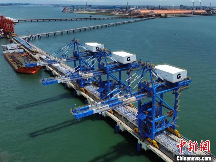 中新网防城港8月26日电(徐思思 易祚胜)8月19日—25日,广西防城港企沙港区赤沙作业区1号、2号泊位工程首批3台桥式抓斗散货卸船机顺利抵港并安装成功,标志着北部湾港最大散货泊位建设全面进入大型卸船机设备在港调试和装卸工艺功能测试阶段。