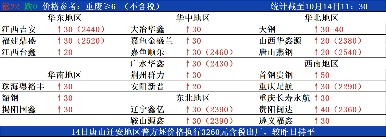 - 10月14日国内钢厂废钢价格调整2024/10/14