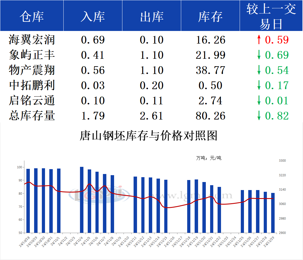 11月29日唐山钢坯库存早报