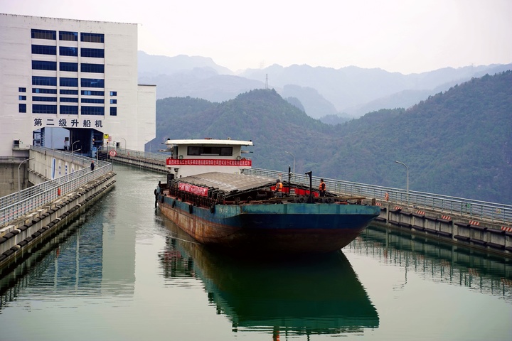 12月19日11时,“航电 644”船舶于构皮滩通航建筑物顺利上行出厢;15 时,“航电631”船舶在银盘通航建筑物成功下行出厢。这标志着黔渝两地乌江全线多梯级通航建筑物“一次申报、连续通过”联合调度试运行试验顺利收官。此次试验覆盖黔渝两地五级通航枢纽、六座升船机与两座船闸,属全国首例跨省(市)多座升船机联合调度,船舶通过五级枢纽时间大幅缩短30%以上,显著提升了通航效率。