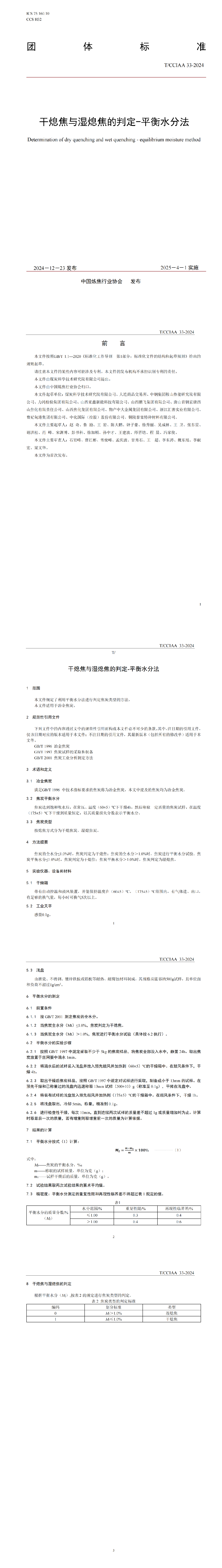 中国炼焦行业协会发布《干熄焦与湿熄焦的判定-平衡水分法》 团体标准