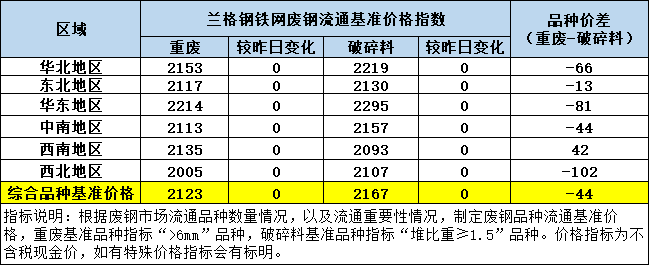 12月27日兰格钢铁网废钢流通基准价格指数为2145持平:其中重废品种综合基准价格指数为2123持平,破碎料品种综合基准价格指数为2167持平。分区域华北地区重废2153(0)破碎料2219(0);东北地区重废2117(0)破碎料2130(0);华东地区重废2214(0)破碎料2295(0);中南地区重废2113(0)破碎料2157(0);西南地区重废2135(0)破碎料2093(0);西北地区重废2005(0)破碎料2107(0)。