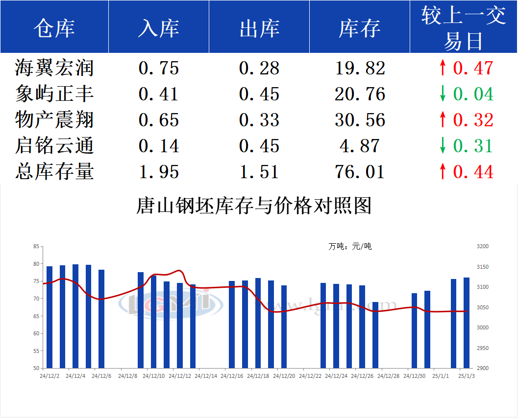 1月3日唐山钢坯库存早报
