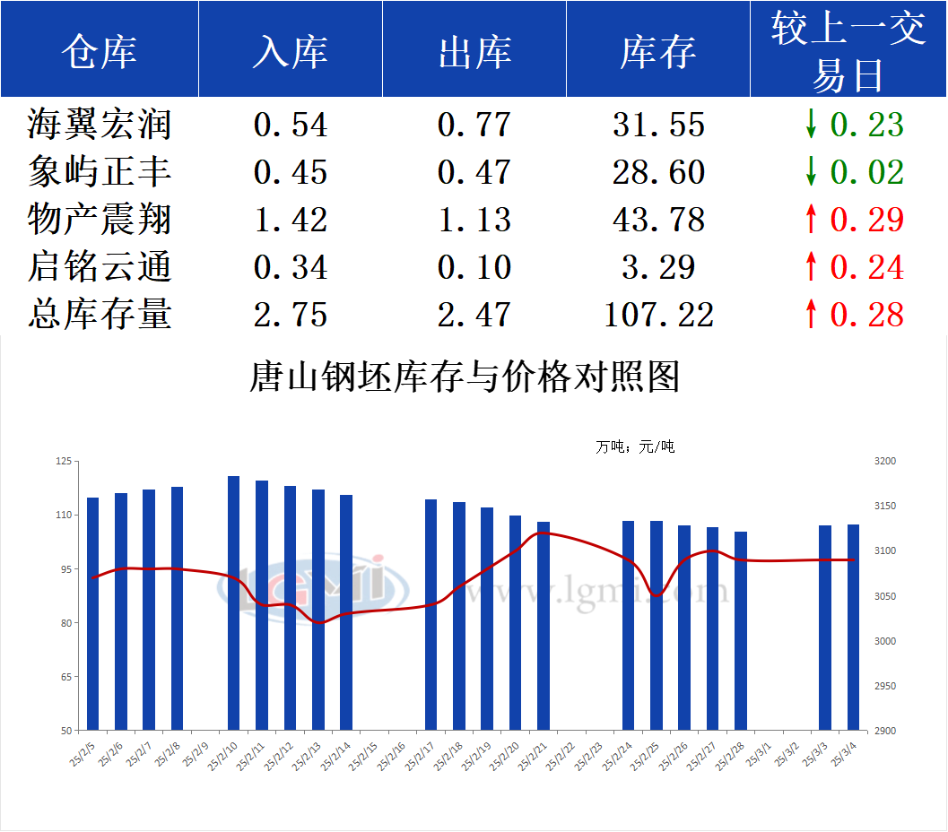 3月4日唐山钢坯库存早报