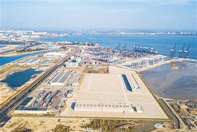 洋浦港封关运作项目和配套工程(无人机照片)。