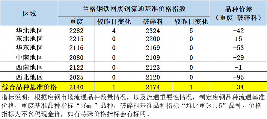 3月7日兰格钢铁网废钢流通基准价格指数为2157涨1:其中重废品种综合基准价格指数为2140涨1,破碎料品种综合基准价格指数为2174涨1。分区域华北地区重废2282(↑4)破碎料2324(↑5);东北地区重废2215(0)破碎料2200(0);华东地区重废2116(0)破碎料2169(0);中南地区重废2080(0)破碎料2109(0);西南地区重废2122(0)破碎料2123(0);西北地区重废2025(0)破碎料2120(0)。