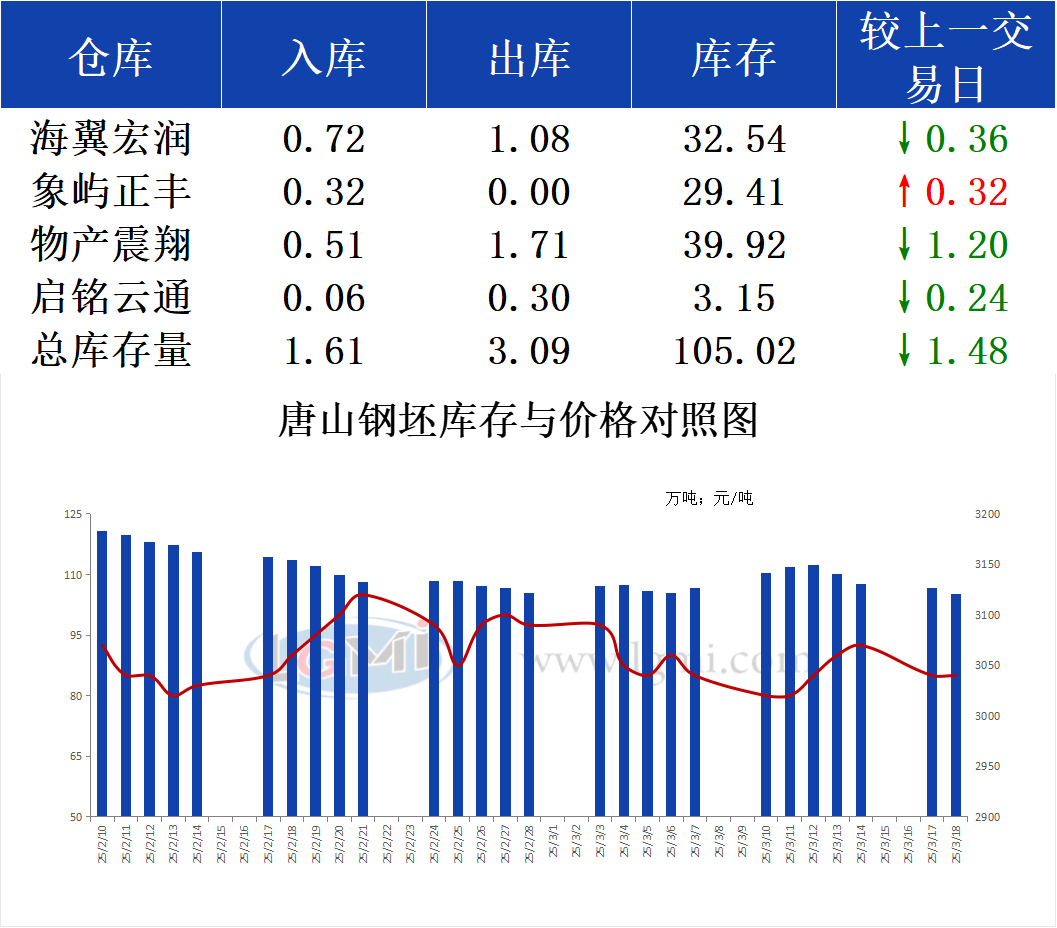 3月18日唐山钢坯库存早报