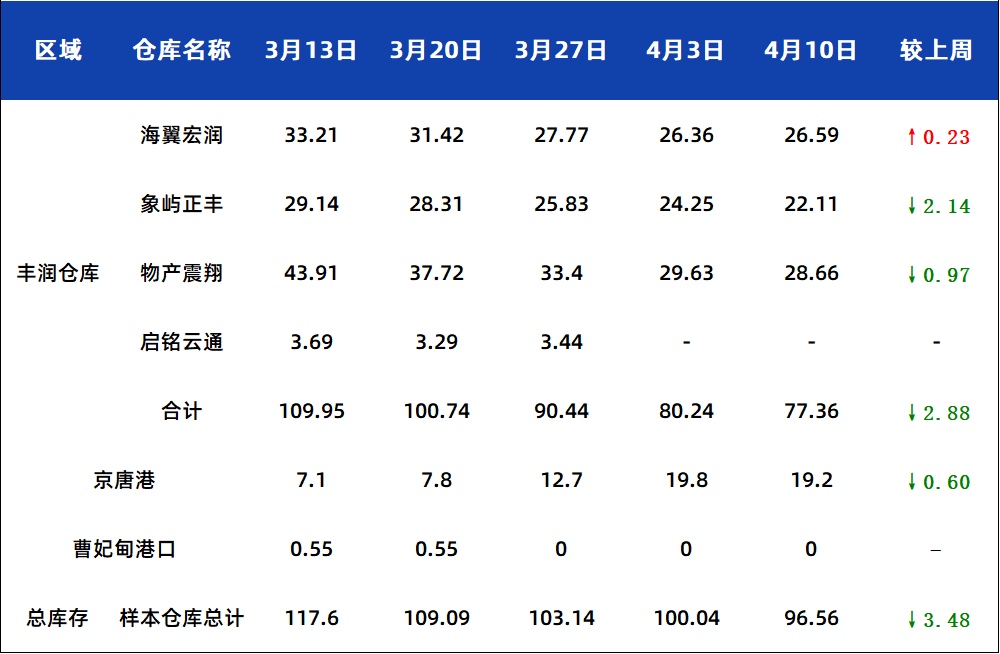 - 4月10日唐山钢坯库存周统计2025/4/10