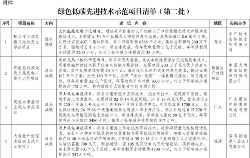 近日,国家发展改革委发布《绿色低碳先进技术示范项目清单(第二批)(公开征求意见稿)》。经过项目单位申报、地方审核推荐、第三方机构评审、部门及地方复核等流程,确定了第二批绿色低碳先进技术示范项目清单,共纳入101个项目。