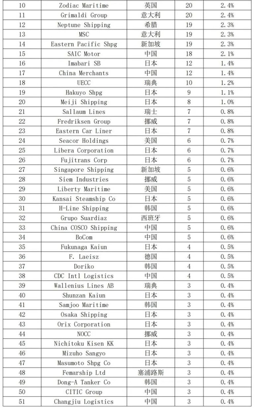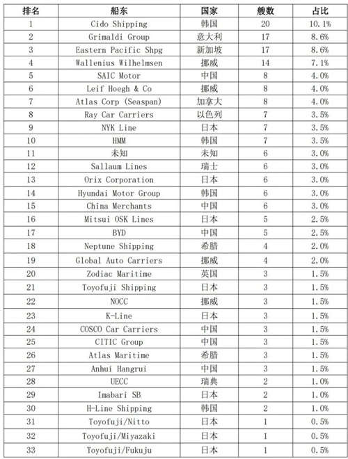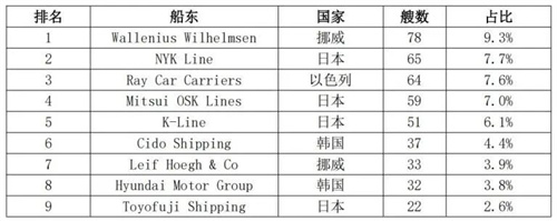 表1 全球汽车运输船船队情况(按船东)