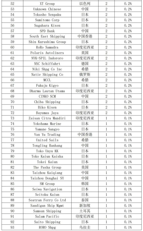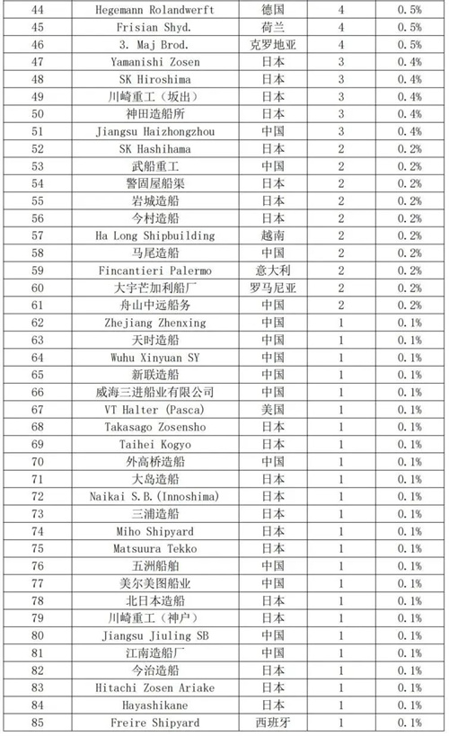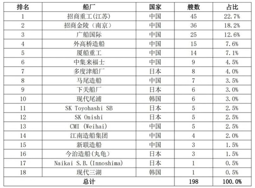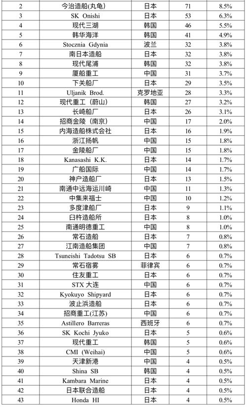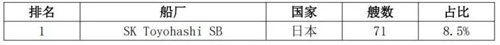 表 2 全球汽车运输船船队情况(按船厂)