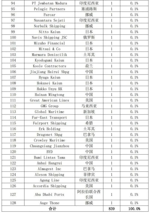 截至4月22日,全球汽车运输船船队共计839艘。从船东公司看,前十船东合计461艘,占比54.9%;从船东国看,日本、挪威、韩国和中国分别占比36.0%、15.4%、10.1%和7.6%。从单体船厂看,前十船厂合计438艘,占比52.2%;从建造国看,日本、中国和韩国分别占比50.3%、20.1%和18.5%。